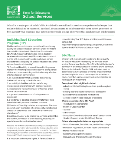 School Services: Facts for Educators