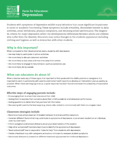 Depression: Facts for Educators